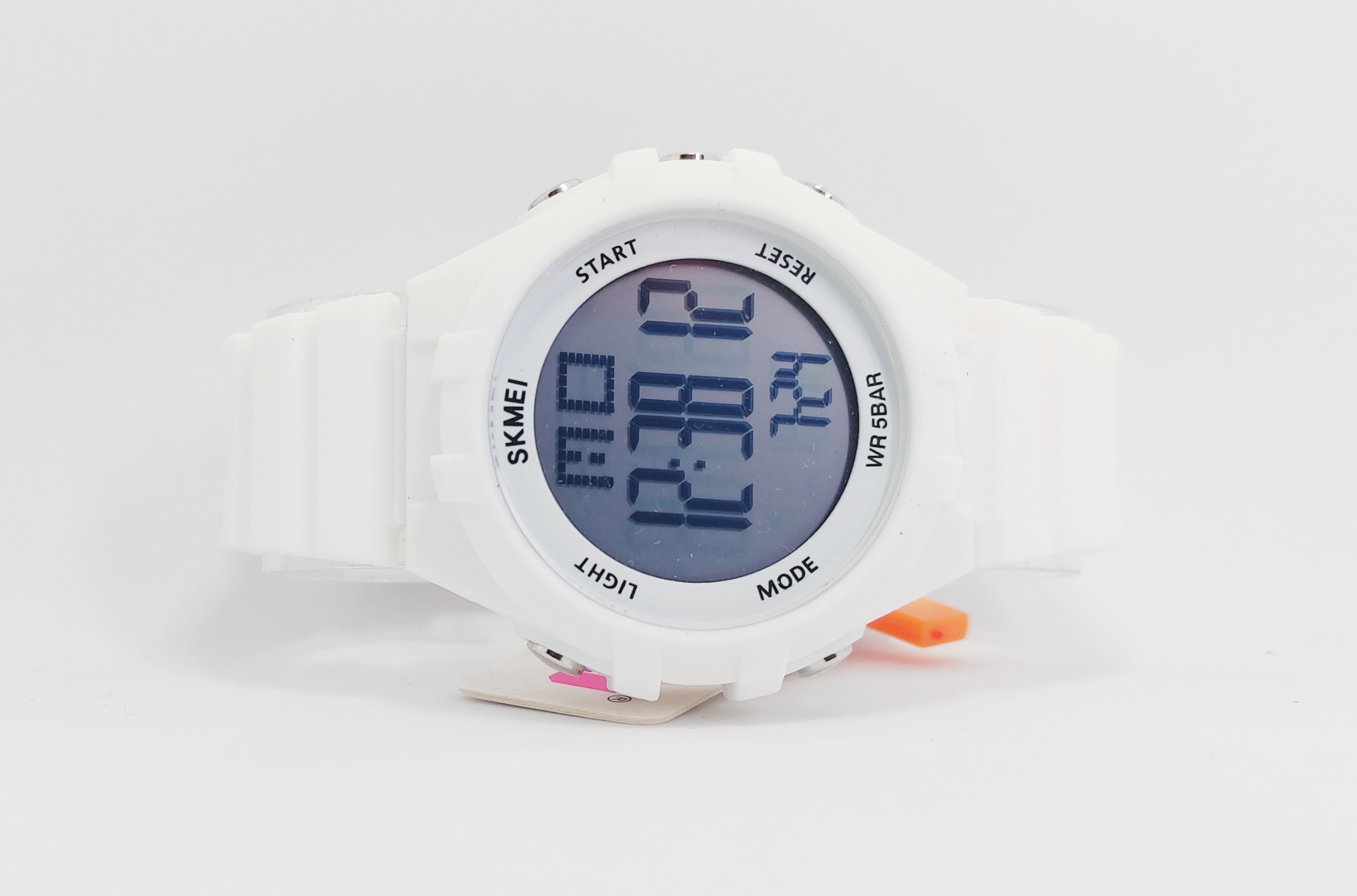 Тип часов: Электронные Материал корпуса: Пластик Класс водонепроницаемости: 5 Bar Стекло: Пластиковое Подсветка: Да Цвет корпуса: Белый Материал браслета/ремешка: Пластик Цвет браслета/ремешка: Белый Страна-изготовитель: Китай Будильник: Да Календарь: Да Отображение даты: Да Размер: 43x43x14 мм