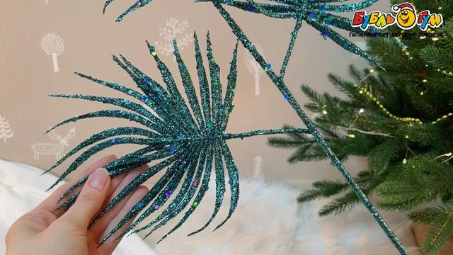 332402 Ветка декоративная Пальма с сияющим покрытием зеленая 60см