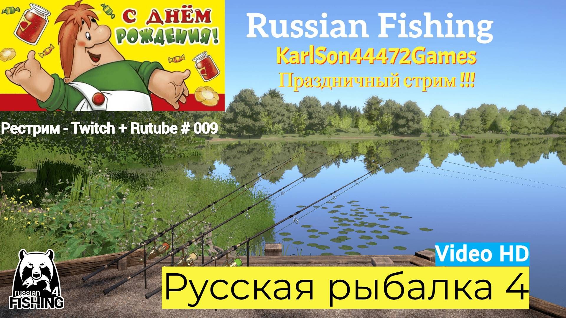 Русская рыбалка 4 Стрим по Русской рыбалке 4 с полным погружением в атмосферу. К тому же,сегодня мой день рождения !!! Так что не забудьте поздравить Карлесончика Дарагого и кинуть копеечку мне на варенье !!! Прошу заранее не судить строго. Я только учусь ловить рыбу. Донатики сюды : https://www.donationalerts.com/r/karlson44472games Группа в Вконтакте : https://vk.com/karlson44472games Канал на Твиче : https://www.twitch.tv/karlson44472games Мой Дзен : https://dzen.ru/id/66cdb6269c68d3103d578c03 Канал на YouTube : https://www.youtube.com/@KarlSon44472Games 💻 МОЙ КОМПЬЮТЕР: ◼️ Процессор Ryzen 5 5700F ◼️ Оперативная память DDR4 32Gb ◼️ Видеокарта Nvidia Geforce RTX 4070 Видеоигры ,стриминг : Farming Simulator 25 , Farming Simulator 22 , SnowRunner , Euro Truck Simulator 2 , Luma Island , Battlefield 3 , Cities : Skylines II , Tom Clancy’s The Division II , Русская рыбалка 4 и другие. #Russianfishing #русскаярыбалка4#рыбалка #рыбак #fishing #рыба #fish #природа #охота #рыбалкаудалась #спиннинг #отдых #рыбаки #улов #щука #охотник #река #нарыбалке #fisherman #карп #рыболов #лето #нарыбалку #fishinglife #лес #трофей