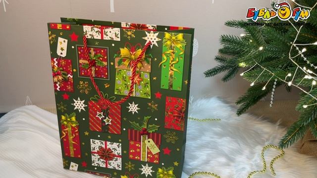 333664 Пакет новогодний Lanson goods с изображением подарочных коробок 32×26×10см зеленый