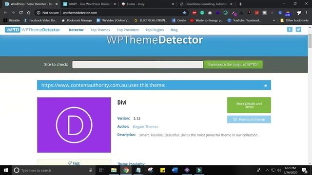 WordPress Theme detector? If you're a web developer or a client sometimes you visit a website and you want to know about the theme and plugins website is using. In this tutorial will show you how to detect the theme of any website even if they hide it. ================================= ?? Support Us by Subscribing: https://www.youtube.com/channel/UC4M6-w-0Qx89mxQLlYKHLWQ?sub_confirmation=1 ================================= Related Topic: ? wpThemeDetector | Website Theme Detector Tutorials 2020 ? How To Check Which Theme A Website Is Using | What CMS is that? ? Elementor Page Builder Tutorial - Elementor Page Builder Review, ? Website Detector - IsItWp.com | wpThemeDetector.com | CMS Wordpress ? Detect Website Platform | What Wordpress Theme Is This ================================= If you enjoyed the video, please give it a like, and consider subscribing to my channel for more WordPress videos released every day! This video brought to you by CodyDigital a look at their site here: ================================= https://www.codydigital.com/ ================================= My Video Editing Software +Get it for Free https://youtu.be/_DdOY7_Zgp0 ================================= FREEBIE YOAST PRO – YOAST SEO Premium Free Download 2020 https://www.youtube.com/watch?v=g3f7v8aGLug ================================= How to Update WordPress 5.3.2 Manually on Localhost https://youtu.be/JZgnUJanuPw ================================= WordPress SSL Installation 2020 https://youtu.be/NJjGQWU_TQA ================================= Migrate WordPress website 2020 | WordPress local to Live Server Migration https://youtu.be/EHGl24WD7Go ================================= XAMPP Installation for WordPress Website 2020 https://youtu.be/tZ1UtFEnJ5k ================================= WordPress installation step by step 2020| WordPress XAMPP https://youtu.be/IG5EwBvnP_0 ================================= Like - Comment - Subscribe ================================= If You have any questions, feel free to comment below. Build your website with @UsmanAsif Email: osman.asif30@gmail.com ================================= Let's Build Your Website Freelancer.com ➡️➡️ https://www.freelancer.com/u/usman1430 Fiverr.com ➡️➡️https://www.fiverr.com/osmanasif Upwork.com ➡️➡️ https://bit.ly/2NMVllL ================================= Follow on Social Media: Instagram©️: https://www.instagram.com/insta_codyd... Facebook©️: https://www.facebook.com/codydigital For Business inquiries: osman.asif30@gmail.com ??Thank you!