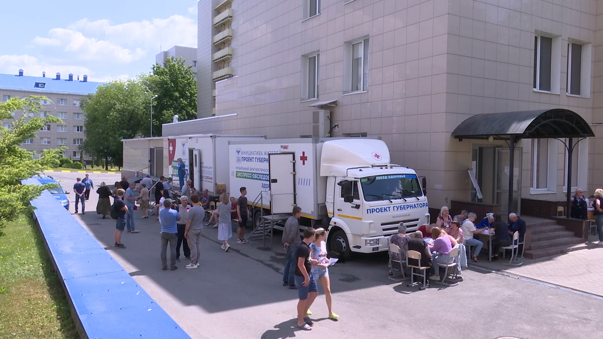 В мобильном диагностическом центре в студенческом городке Белгородского госуниверситета проводят первичное обследование здоровья вынужденных переселенцев из Шебекино.