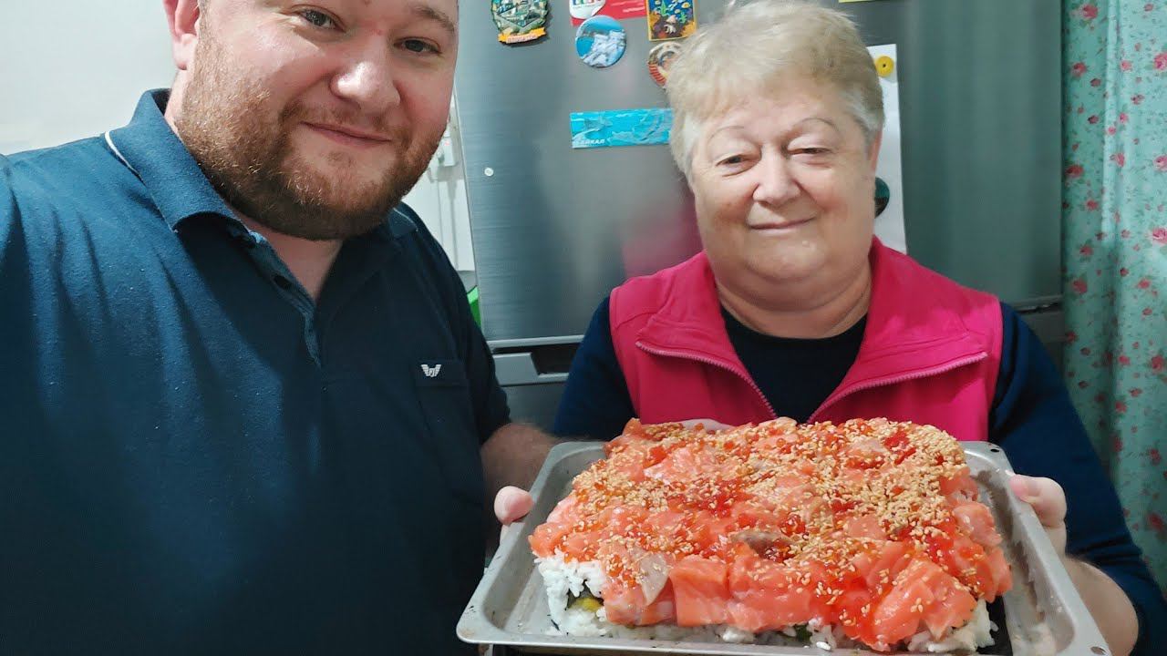 Делаем с Мамой ТОРТ СУШИ из Красной рыбы Соломон! Первое видео 2022! С Новым Годом!!!