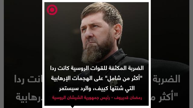 رئيس جمهورية الشيشان الروسية رمضان قديروف يعلن أن الضربة المكثفة التي نفذتها القوات الروسية كانت ردا "أكثر من شامل" على الهجمات الإرهابية التي شنتها كييف، مشيرا إلى أن الرد سيستمر