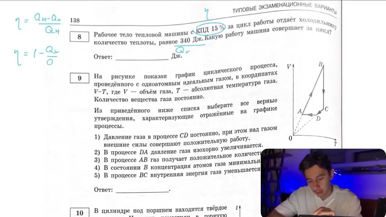 Рабочее тело тепловой машины с КПД 15 % за цикл работы отдаёт холодильнику количество теплоты - №