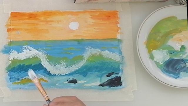 Такие работы не хочется никому показывать. Море. Гуашь.