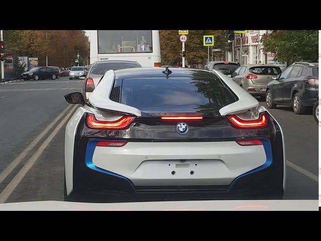 фантастический гибридный суперкар BMW i8 едет по городу Новочеркасска базовая стоимость от 9900000 млн руб