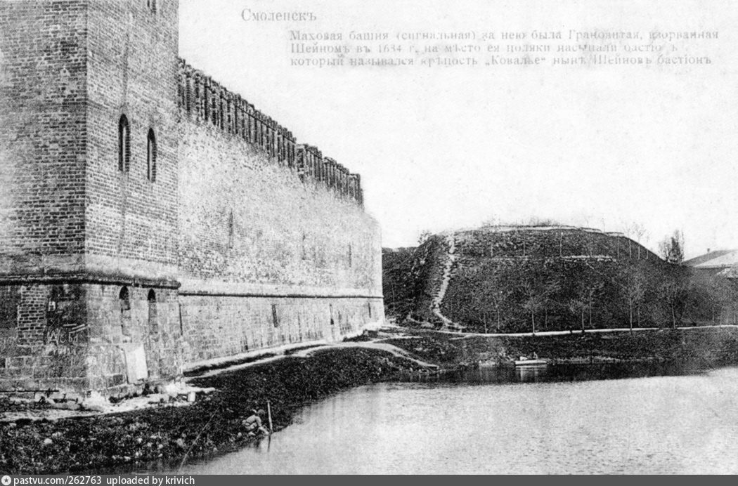Шеинов Бастион назван в честь воеводы Михаила Шеина, построен в 1632- 1634 годах вместо взорванной башни Крепостной стены. Вначале там в 2019 искали могилу французского генерала Гюдена, друга Наполеона