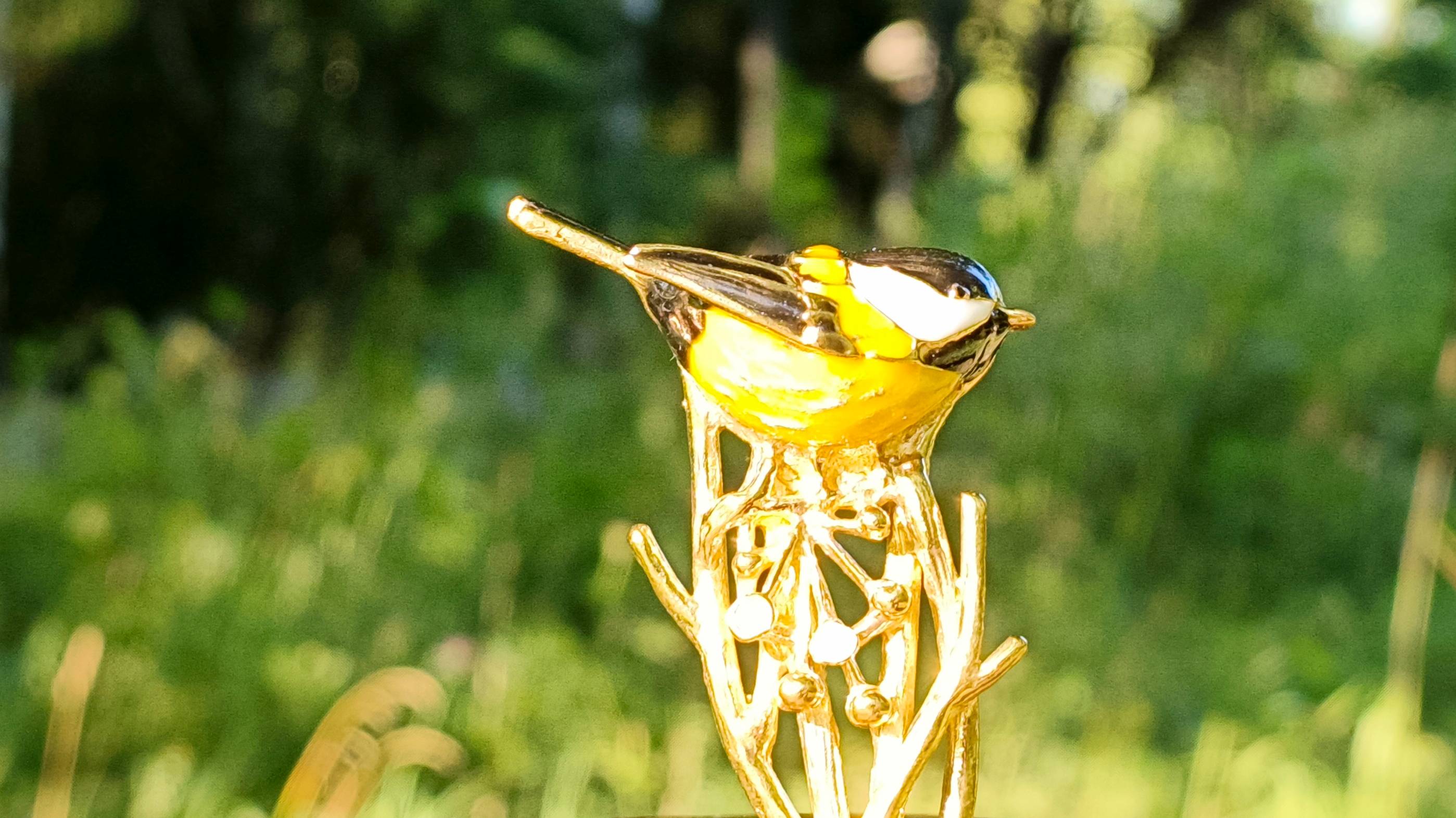 Чайная ложка Синичка со вставкой из латуни с эмалью