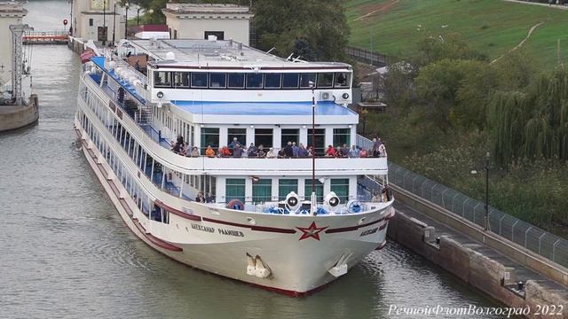 Теплоход А. Радищев выходит из первого шлюза ВДСК.mp4