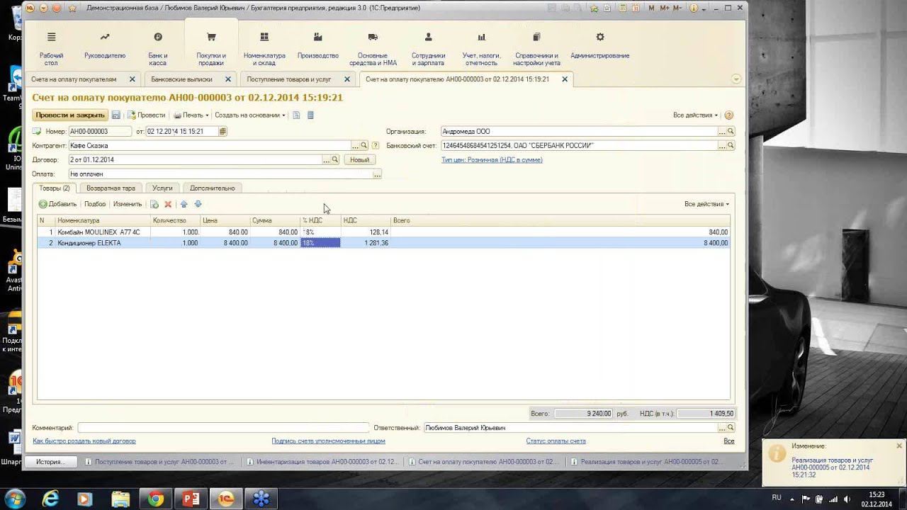 Запись вебинара 2 декабря 2014 года «Практический пример отражения в системе учета товаров и услуг»