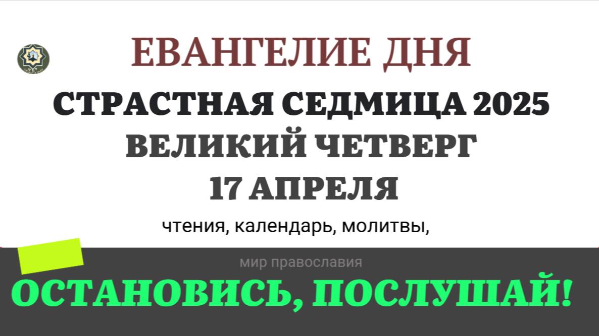 17 АПРЕЛЯ ЧЕТВЕРГ ЕВАНГЕЛИЕ ДНЯ 2025 #евангелие