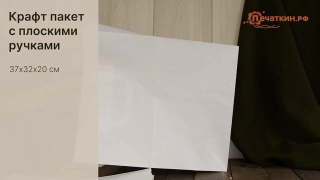 Белый крафт пакет с плоскими ручками 37х32х20