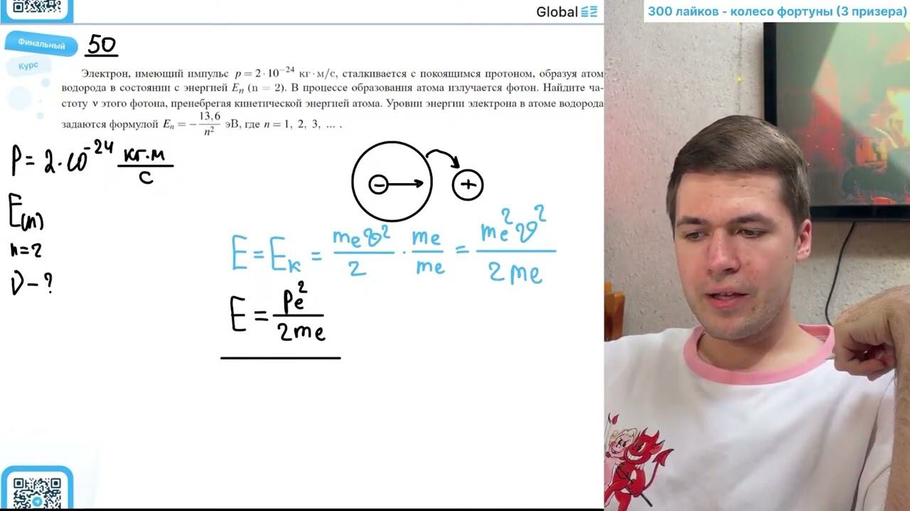 Электрон, имеющий импульс p = 2*10^-24 кг*с/с сталкивается с покоящимся протоном, образуя атом - №