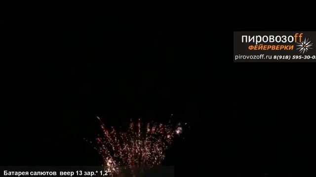 ФВР-5 Фейерверк веерный ряд 13 залпов 30 м пиро-эффект Chrys mine, blue spit chrys with red strobe