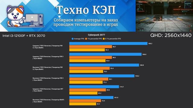Cyberpunk 2077 🔥 Intel i3-12100F + RTX 3070 Тест игрового ПК InfernoCore #12100f #3070 #rtx3070