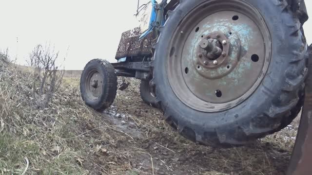 Запустил дизель своего трактора МТЗ-80 и отправился за большим баком для воды. В условиях бездорожья и сильного гололёда трактор не выехал в гору и пошёл назад. От катастрофы нас отделяли считанные сантиметры.