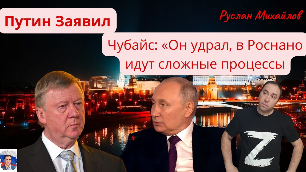 Руслан Михайлов политобозреватель сказал свое личное мнение. Путин Чубайс: он Удрал, в Роснано идут сложные процессы! Путин об Анатолии Чубайсе: «Он удрал, в Роснано идут сложные процессы, там большая финансовая дыра, может он опасается уголовных дел из-за этого. Он в Израиле даже перешел на нелегальное положение Подписываемся на канал, ставим лайки Поддержать канал - 4100117815002119 (Юмани) Дзен Канал https://dzen.ru/id/64dccedd72283b41bf5d9ad4 ТЕЛЕГРАМ-КАНАЛ - https://t.me/ruslnmikhailov группа Вконтакте - https://vk.com/club202827331