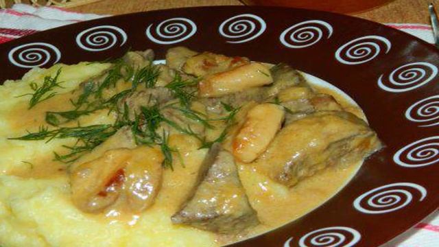 Свиная печень в сливках