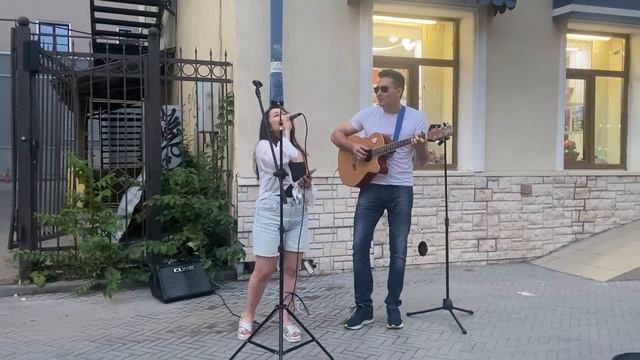 Нереальное исполнение песни под гитару. Девушка красиво поёт Луч солнца золотого на улице Баумана в Казани Голос завораживает до мурашек.