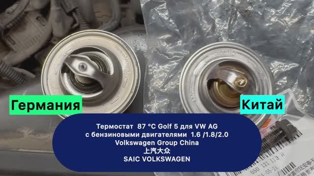 Сравнение термостатов для VAG 1.6 /1.8/2.0 Китай из Golf 5 2005 г. мотор 1.6 BSF 102 л.с. Германия