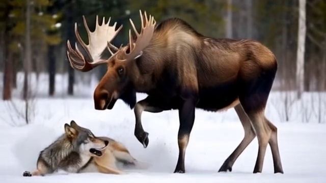 Схватка лося с волком