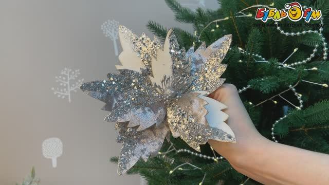 332445 Украшение новогоднее Остролист на прищепке велюровый с пайетками серебристо-белый 20см