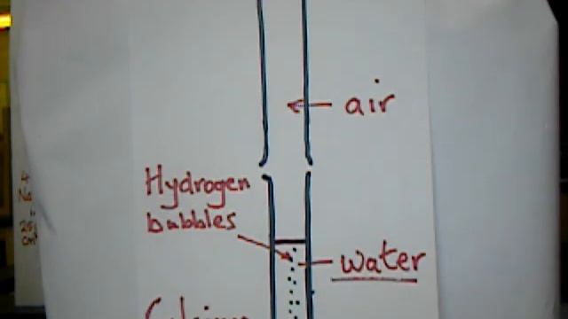 3 small granules of calcium are added to a boiling tube that is half-filled with water. The hydrogen is collected in an inverted boiling tube held above the other. Observations are made and the gas bubbling is tested. It is explained that this is a relatively simple way to make a small sample of hydrogen gas. Frank Scullion Production and Recording: Frank Scullion