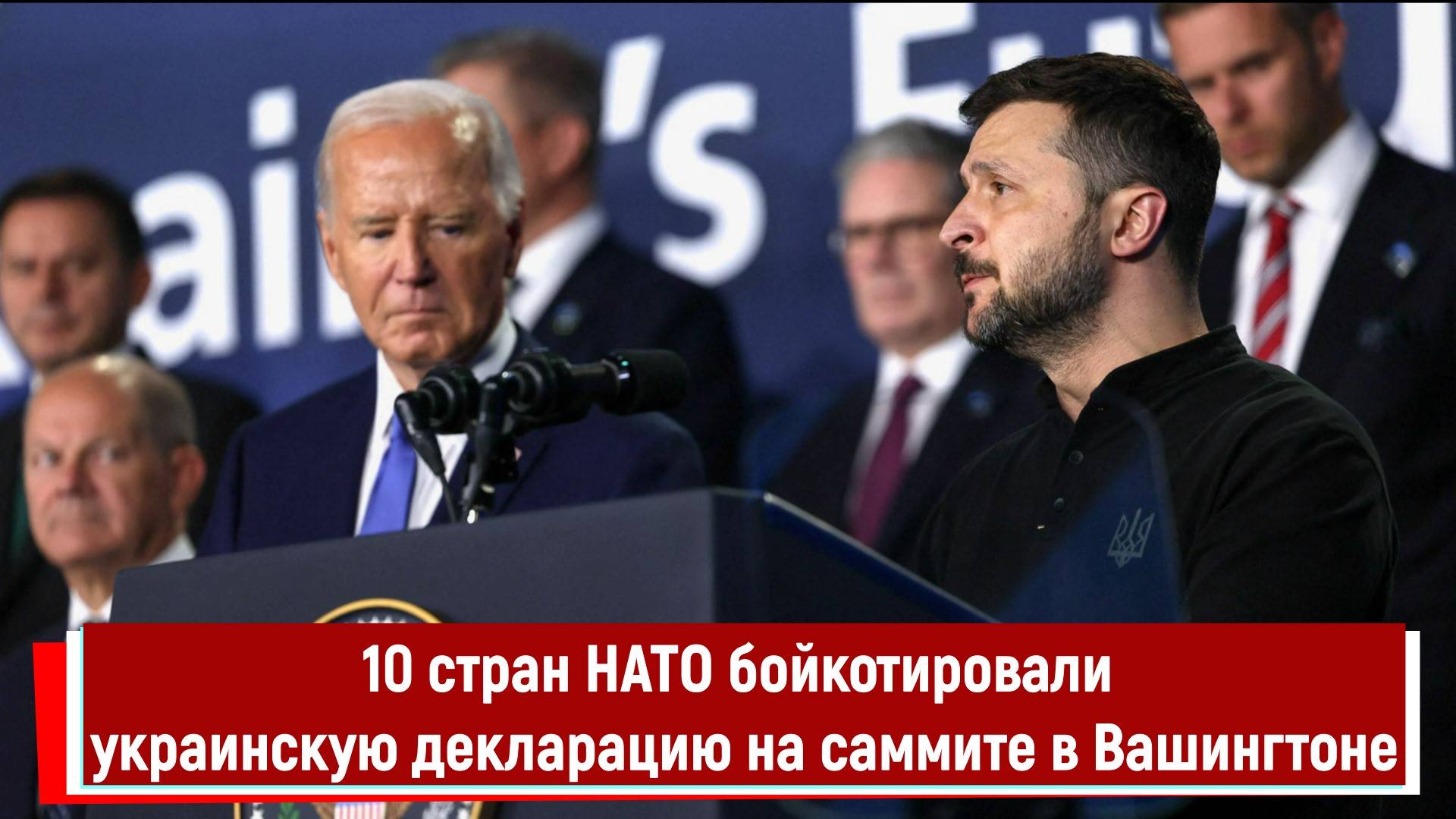 10 стран НАТО бойкотировали украинскую декларацию на саммите в Вашингтоне. Впервые в истории саммитов НАТО сразу треть членов НАТО отказалась подписывать итоговую декларацию. Многие страны НАТО выступили против военной поддержки Украины и за начала мирных переговоров. Администрация Байдена переложила центр ответственности за военную поддержку Украины на европейских союзников по НАТО