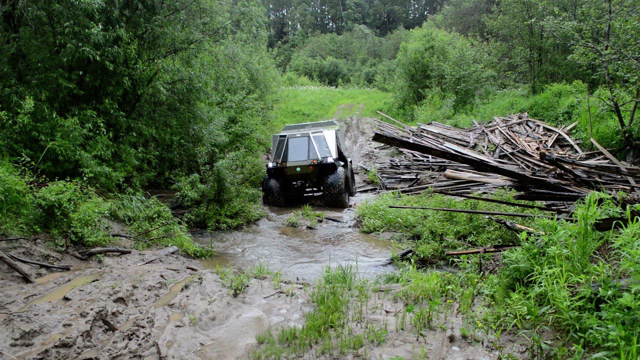 Костромская область. Парфеньевский район. Поход 12.06.2016. Автомобиль Лесник форсирует речку.