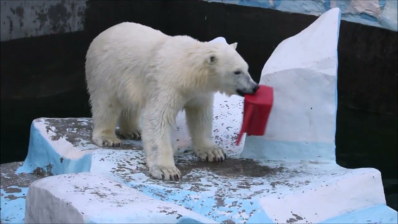 Герда родилась в Москве 20 ноября 2007 года. Её мама Симона, папа Врангель. В Новосибирск переехала 05.08.2008. В 2013 году у Герды и Кая родилась Шилка. В 2015 году она переехала в Японию. В 2015 году родился Ростик. 6 декабря 2018 года он переехал в Китай. В 2018 году родились Норди и Шайна. Данная пара молодых медведей находилась вне экспозиции зоопарка, поэтому посетители не могли их видеть. Передача молодых медведей в другой зоопарк не планируется, — ответили на запрос редакции в пресс-центре мэрии Новосибирска. Но Шайна 20 января 2024 года переехала в Ижевский зоопарк. Белые медведи одиночные животные. Как правило, миролюбивы по отношению друг к другу, но между самцами в брачный период случаются стычки. Взрослые самцы могут нападать на медвежат. Гон с марта по июнь. Продолжительность жизни — максимум 25—30 лет; в неволе рекорд долгожительства — 42 года. Вес очень крупных самцов в некоторых частях ареала 700 и даже 800 кг: есть данные о зверях весом до 1000 кг. Обычно вес меньше. Самки всегда не только меньше, но и значительно легче самцов. Так, самцы в восточной Гренландии в состоянии нормальной упитанности весят 400—450 кг, хорошо упитанные — до 500 кг, самки, даже очень сытые, здесь же редко весят больше 350—380 кг, т. е. их вес составляет около 75% веса самцов. Длина тела на 3-й день после рождения 28—32 см, средний вес — около 755 г (650—840 г). На 26-й день длина тела увеличивается незначительно — до 35—38 см, а вес возрастает до 1125—1275 г. В возрасте 60 дней самцы весят около 7 кг, самки — около 6 кг при длине тела у первых 58—60 см, у вторых 54—58 см. В возрасте 4 месяца медвежата достигают веса 22—23 кг, в 6-месячном возрасте при длине около 110 см — 40—43 кг, в 8-месячном — 58—62 кг. Длина тела в возрасте с 6 до 9 месяцев нарастает по 6—7 см в месяц. Во время зимнего сна рост почти прекращается. В зоопарке медведей кормят утром морской рыбой, хлеб с рыбьим жиром внутри, морковь, яблоки, морская капуста, яйцо дают сырое. Медвежат подкармливают молоком из соски. На ужин мясо (говядина, конина, куры или индейка). Летом и осенью арбузы, дыни, ранетки, кабачки, тыквы, огурцы. Когда показательное кормление летом бросают живую рыбу. Медвежата с медведицей находятся до 2-х лет. 16 декабря 2022 года Герда родила 2-х медвежат. И это две девочки! Имена дали 25 июня. Медвежат зовут Стрелка и Белка. Обзор вольеров белых медведей https://www.youtube.com/watch?v=mAt_b7JD0B4&list=PLGvf0V-rAHxkpGKJaWIZIUxRKgKiqV3xZ&index=17&t=0s