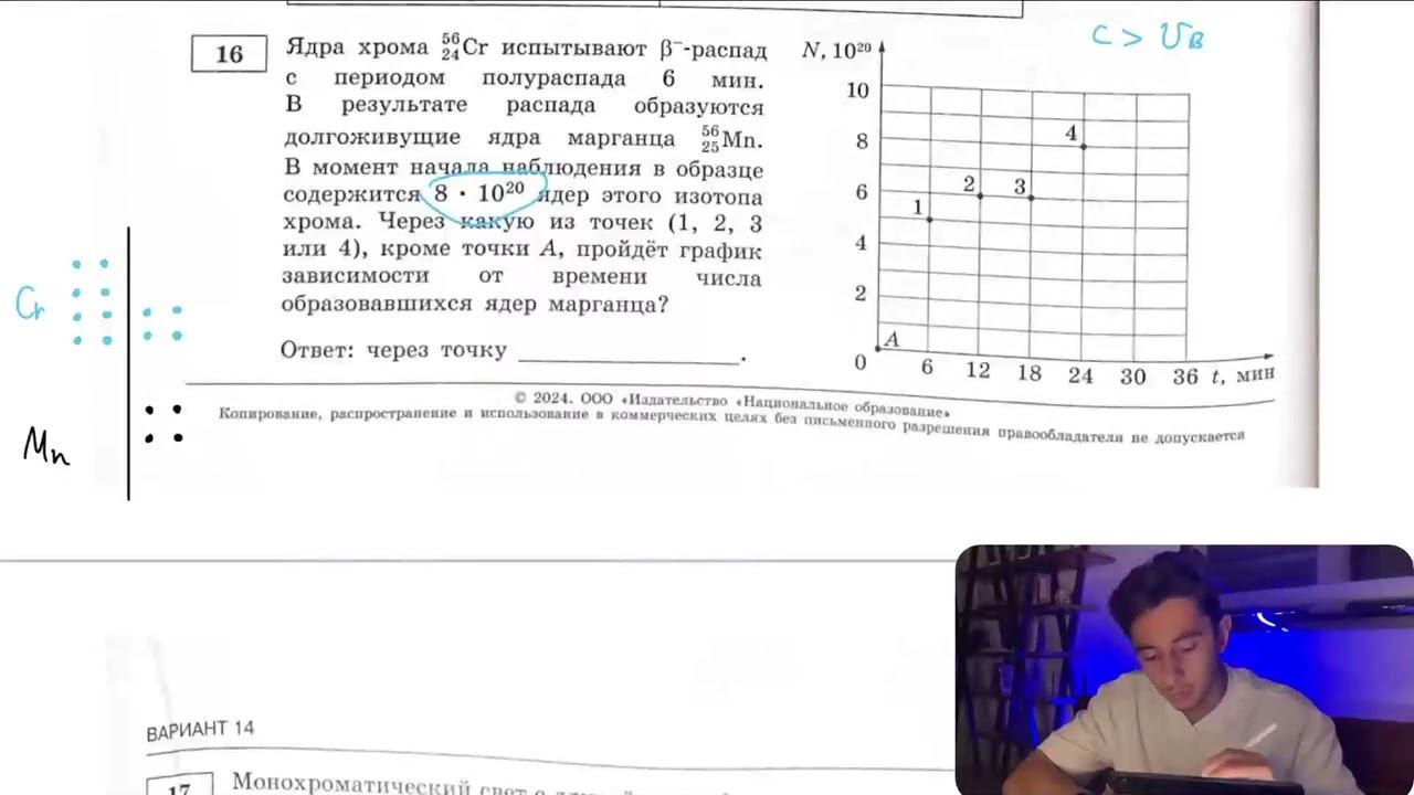 Ядра хрома 56 24cr испытывают β^- -распад с периодом полураспада 6 мин. В результате распада - №