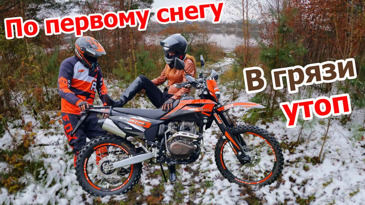 Покатушки на эндуро мотоцикле regulmoto sport 003 pro по первому снегу, утонул в иле, заезды в горки