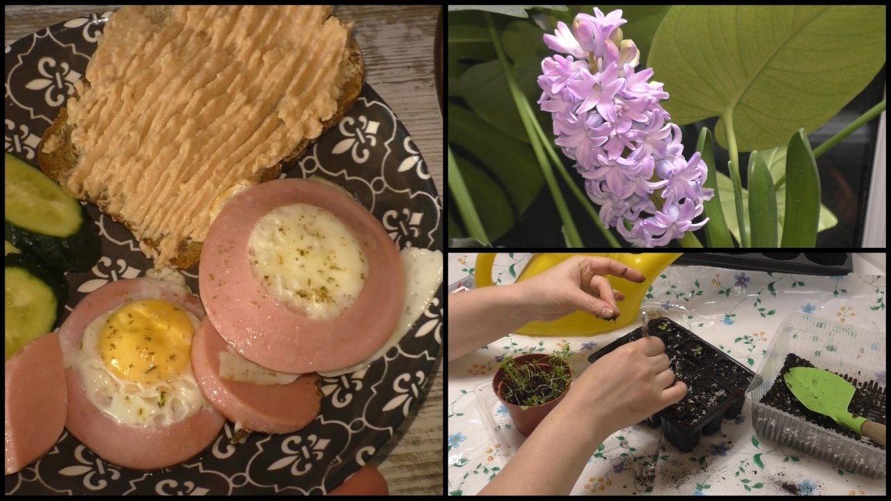 Завтрак. Пикирую сельдерей и петунию. Сею цинерарию,колеус. Солю форель на день рождения