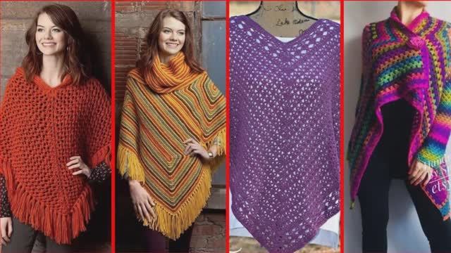 Стильные, модные яркие пончо спицами и крючком. Большой выбор моделей.