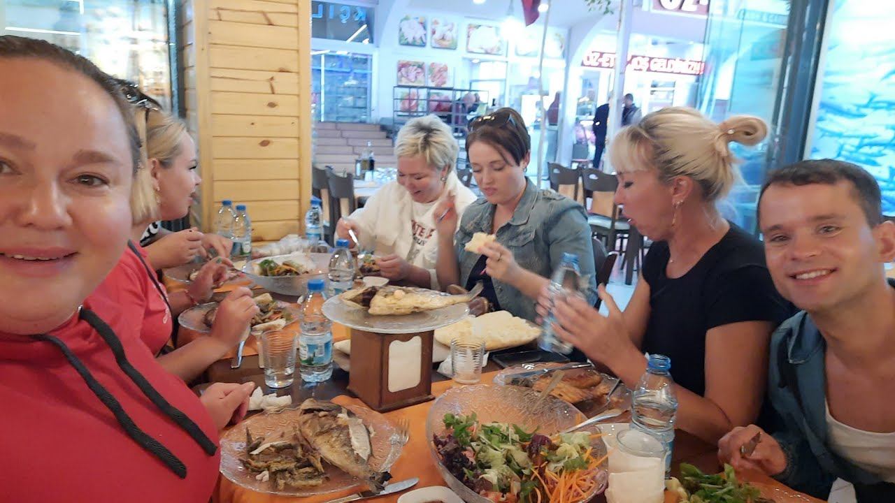 ДРУЖНОЙ КОМПАНИЕЙ в РЫБНОМ РЕСТОРАНЕна БалыкБазарАланья Турция ноябрь