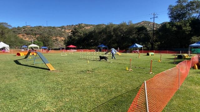 Kathy and Rigel, Belgian Sheepdog, enjoy a NADAC run at the Palomar Agility Club NADAC Trial at Lakeside Dog Sports at Lake Wohlford, February 19th and 20th, 2022. The judge for the weekend was Kristina Diedrick.