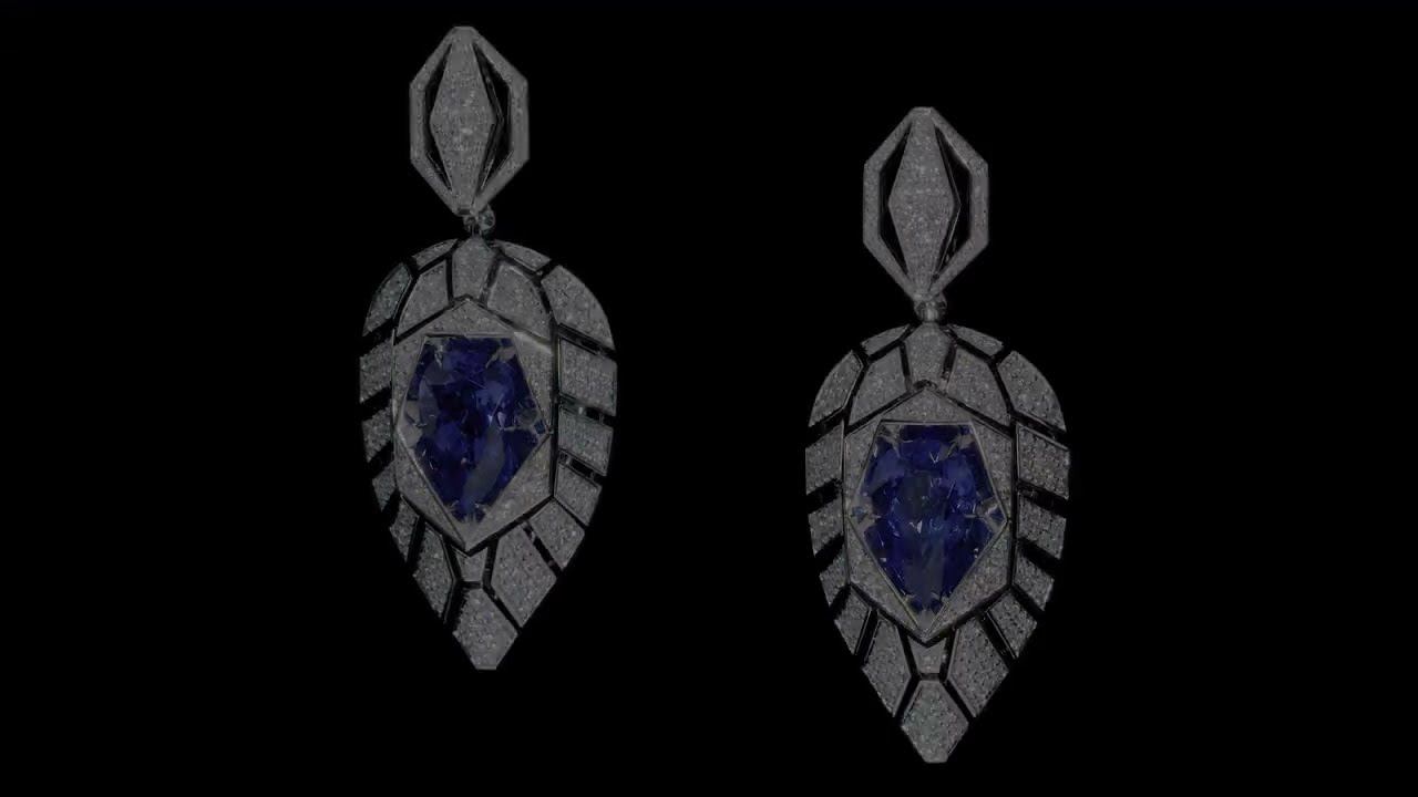 Серьги-трансформеры из коллекции Discovery Центральные камни: 2 танзанита , огранка «груша» 5,52 ct./ 4,70 ct Инкрустация: 432 бриллианта 3,08 ct