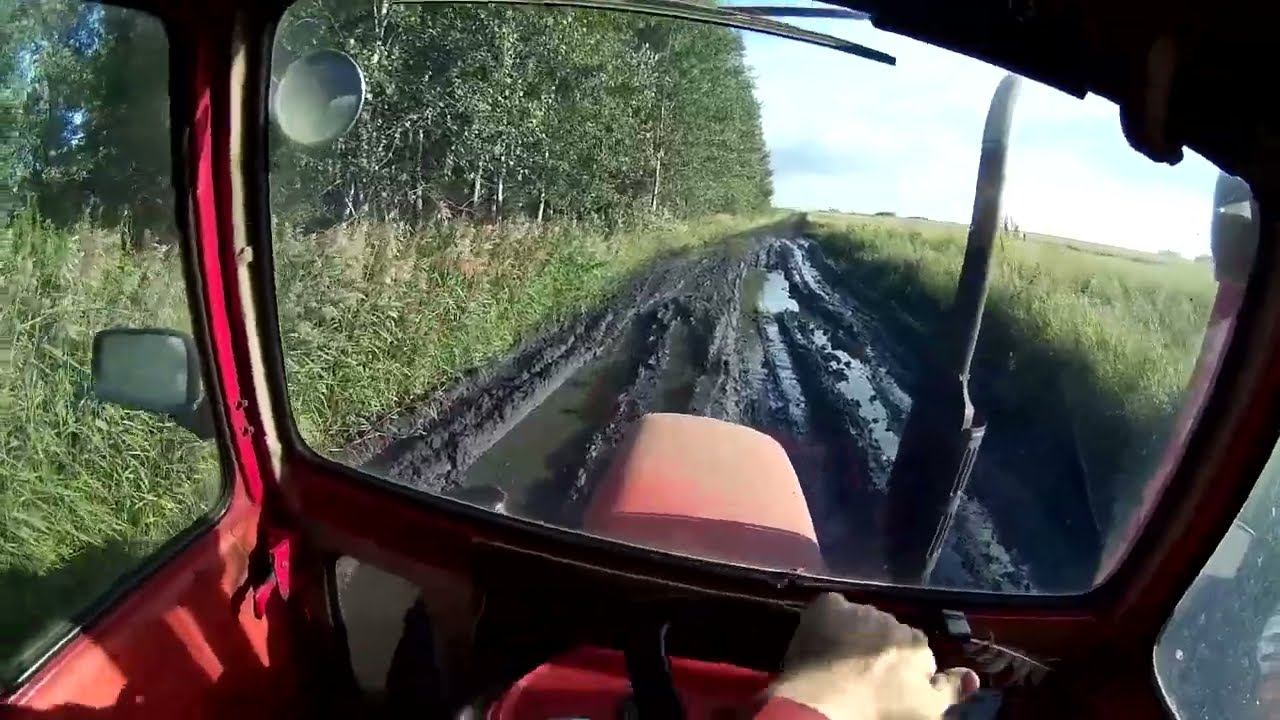 Эх, дороги. Началась уборочная в дождливый год. Минитрактор в грузовых колеях.