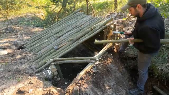 Строительство ТЕПЛОГО и УЮТНОГО убежища для выживания с печью, подземная бревенчатая хижина, место д