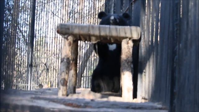 Уссурийские белогрудые медвежата любят высоту.