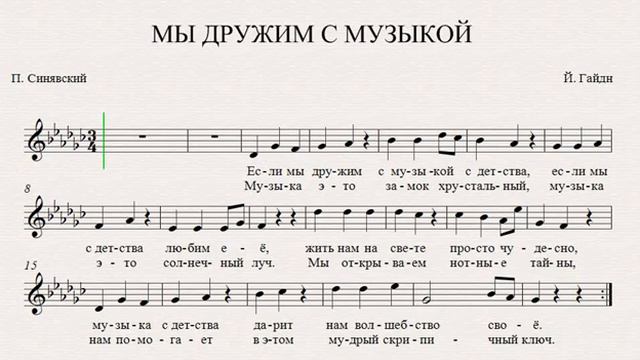 Музыка Й. Гайдна, текст П. Синявского Ноты голоса с текстом, за кадром аккомпанемент. Тональность соль-бемоль мажор. Оригинал - соль мажор.
