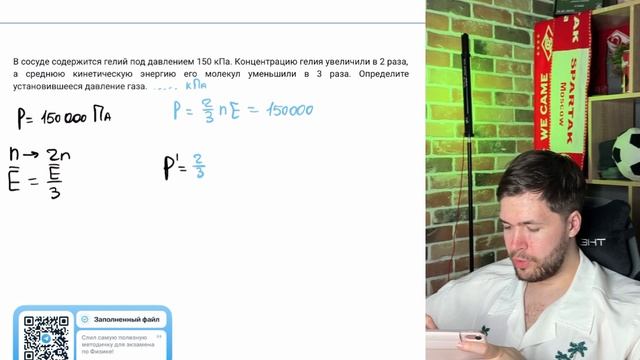 В сосуде содержится гелий под давлением 150 кПа. Концентрацию гелия увеличили в 2 раза - №37398