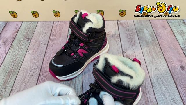 335132 Сапоги Pasito зимние на липучке и шнуровке с фиксатором с меховой отделкой черные