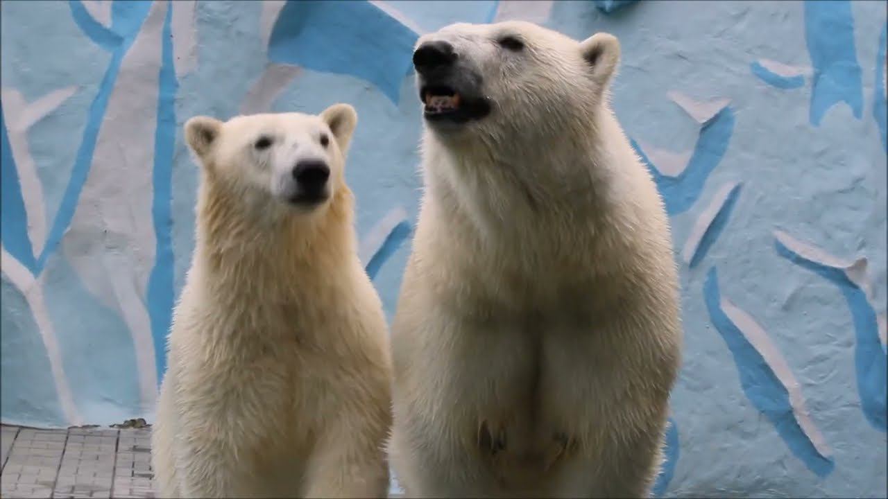 Герда родилась в Москве 20 ноября 2007 года. Её мама Симона, папа Врангель. В Новосибирск переехала 05.08.2008. В 2013 году у Герды и Кая родилась Шилка. В 2015 году она переехала в Японию. В 2015 году родился Ростик. 6 декабря 2018 года он переехал в Китай. В 2018 году родились Норди и Шайна. Данная пара молодых медведей находилась вне экспозиции зоопарка, поэтому посетители не могли их видеть. Передача молодых медведей в другой зоопарк не планируется, — ответили на запрос редакции в пресс-центре мэрии Новосибирска. Но Шайна 20 января 2024 года переехала в Ижевский зоопарк. Белые медведи одиночные животные. Как правило, миролюбивы по отношению друг к другу, но между самцами в брачный период случаются стычки. Взрослые самцы могут нападать на медвежат. Гон с марта по июнь. Продолжительность жизни — максимум 25—30 лет; в неволе рекорд долгожительства — 42 года. Вес очень крупных самцов в некоторых частях ареала 700 и даже 800 кг: есть данные о зверях весом до 1000 кг. Обычно вес меньше. Самки всегда не только меньше, но и значительно легче самцов. Так, самцы в восточной Гренландии в состоянии нормальной упитанности весят 400—450 кг, хорошо упитанные — до 500 кг, самки, даже очень сытые, здесь же редко весят больше 350—380 кг, т. е. их вес составляет около 75% веса самцов. Длина тела на 3-й день после рождения 28—32 см, средний вес — около 755 г (650—840 г). На 26-й день длина тела увеличивается незначительно — до 35—38 см, а вес возрастает до 1125—1275 г. В возрасте 60 дней самцы весят около 7 кг, самки — около 6 кг при длине тела у первых 58—60 см, у вторых 54—58 см. В возрасте 4 месяца медвежата достигают веса 22—23 кг, в 6-месячном возрасте при длине около 110 см — 40—43 кг, в 8-месячном — 58—62 кг. Длина тела в возрасте с 6 до 9 месяцев нарастает по 6—7 см в месяц. Во время зимнего сна рост почти прекращается. В зоопарке медведей кормят утром морской рыбой, хлеб с рыбьим жиром внутри, морковь, яблоки, морская капуста, яйцо дают сырое. Медвежат подкармливают молоком из соски. На ужин мясо (говядина, конина, куры или индейка). Летом и осенью арбузы, дыни, ранетки, кабачки, тыквы, огурцы. Когда показательное кормление летом бросают живую рыбу. Медвежата с медведицей находятся до 2-х лет. 16 декабря 2022 года Герда родила 2-х медвежат. И это две девочки! Имена дали 25 июня. Медвежат зовут Стрелка и Белка. Обзор вольеров белых медведей https://www.youtube.com/watch?v=mAt_b7JD0B4&list=PLGvf0V-rAHxkpGKJaWIZIUxRKgKiqV3xZ&index=17&t=0s