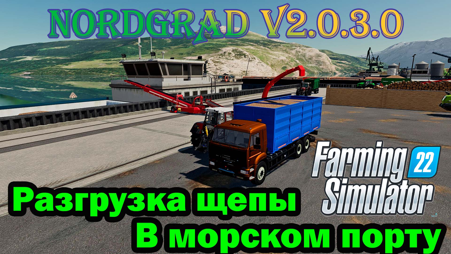 🟢Farming Simulator 22. Карта NORDGRAD. Разгрузка Щепы, в морском порту
