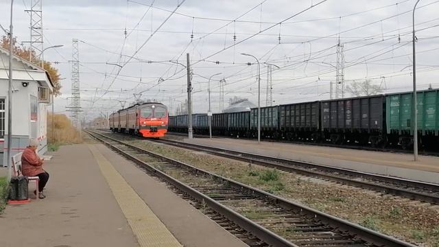 Электропоезд ЭД4М-0158 с пригородным поездом №6437 Уфа - Раевка прибывает на 2-й путь Ст. Шингак-Куль, Республика Башкортостан, КБШЖД Дата: 17.10.2022