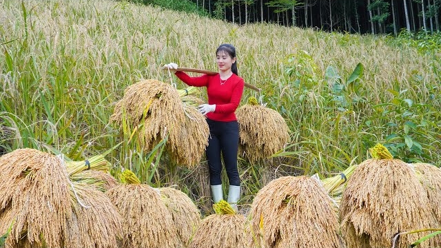 Сбор урожая горного риса. Как сушить и консервировать горный рис. Нхат. Вьетнам