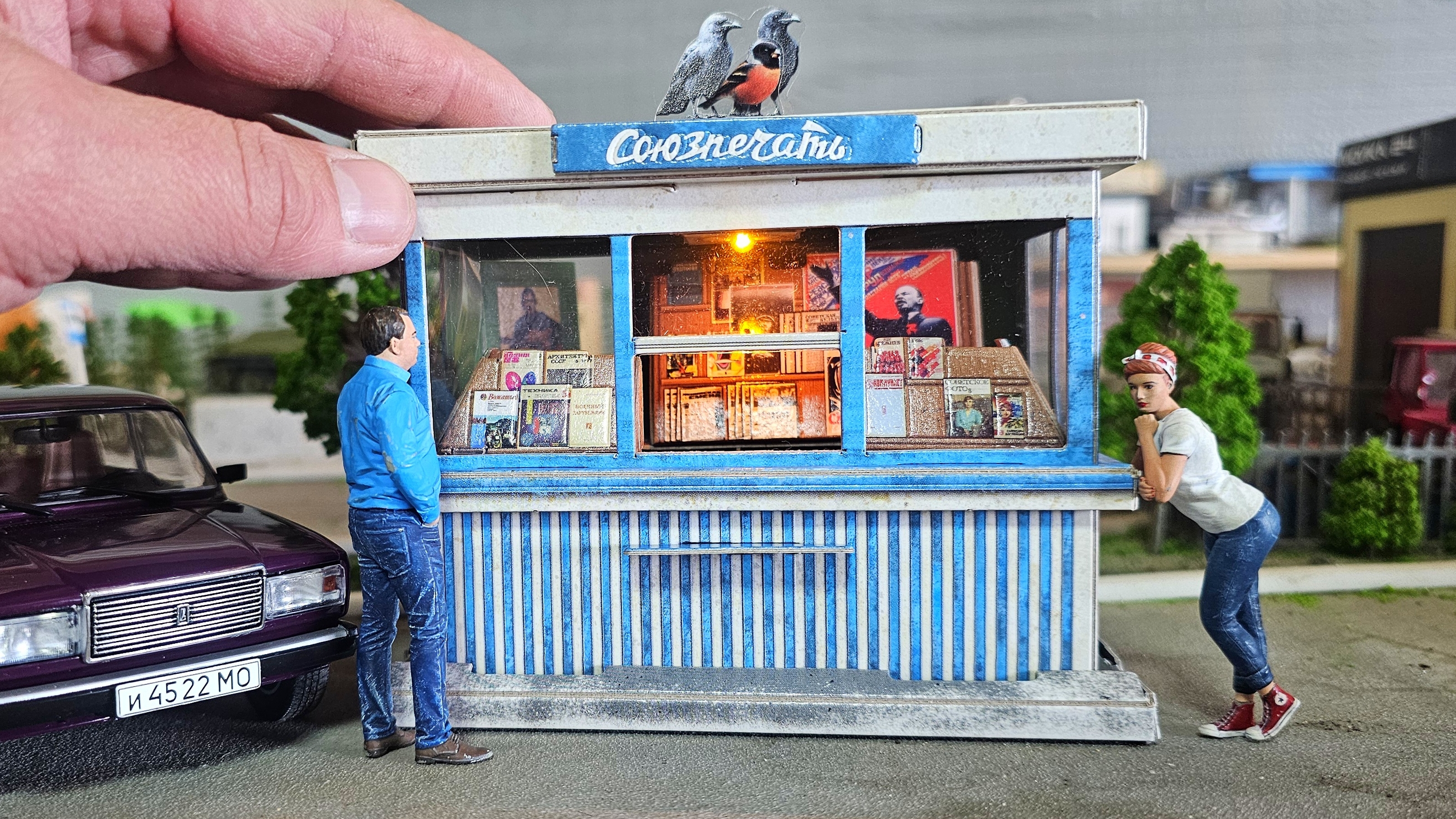 Построил советский ларек, газетный киоск из 90х Союзпечать из картона, производитель модели Умная Бумага. Ларек со светом, масштаб 1/26, сравнил с моделями и фигурками в 24 масштабе, получилась красивая диорама, дополнение на макет города. ПОДПИШИСЬ НА САМЫЙ БОЛЬШОЙ КАНАЛ ПРО МАШИНКИ ##TOYHOUSE #промашинки #макет #модельки #машинки #моделимашин