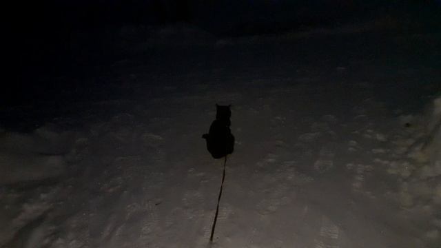 Тишка вышел погулять, еще темно.